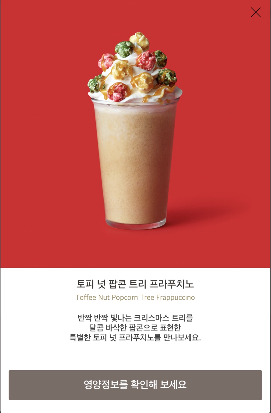 이번 스타벅스 시즌음료, 토피 넛 팝콘 트리 프라푸치노는 달달하고 맛있습니다.