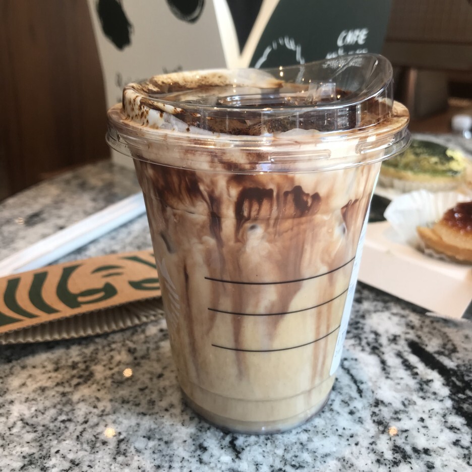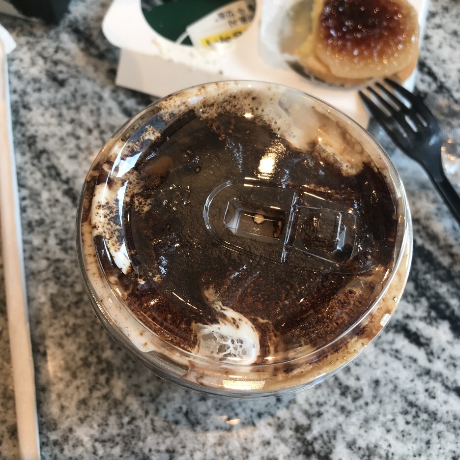 아인슈페너를 좋아하는 이유 중 하나가 커피에 크림이 가라앉는 모습을 멍하게 보는 걸 좋아해서인데 이렇게 카라멜파우더가 녹으면서 가라앉는 모습도 좋네요.