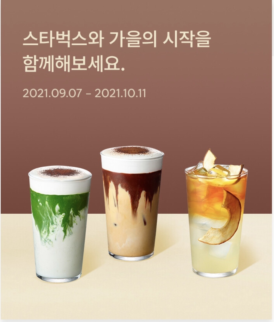 스벅에서 가을 시즌 음료 3종이 새로 나왔어요.