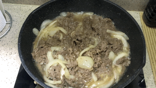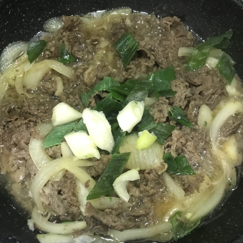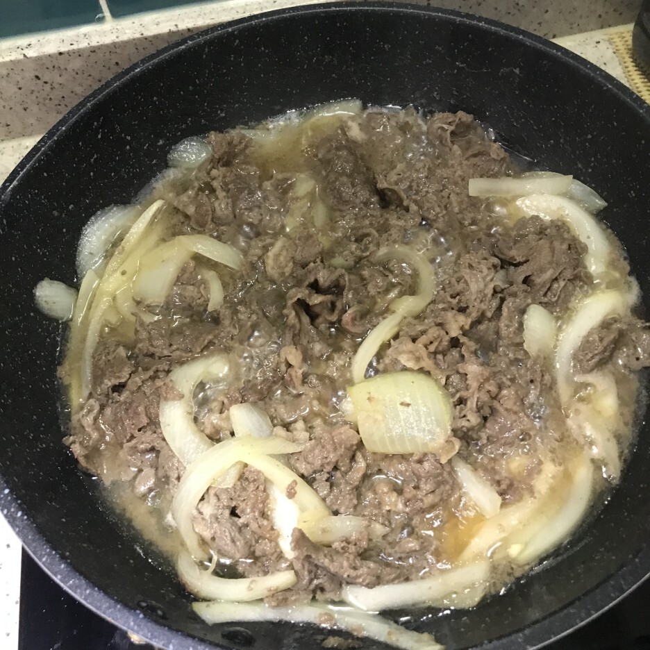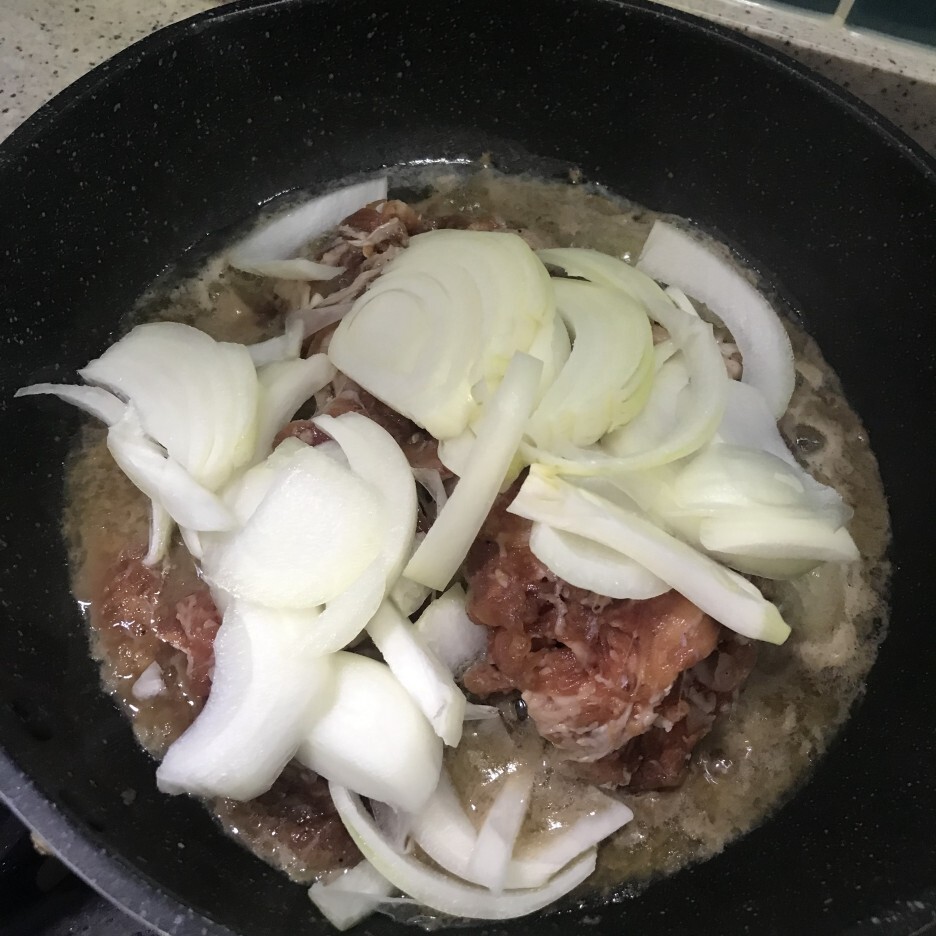 어느 정도 끓여서 해동이 될 때쯤, 양념과 고기만 있기 때문에 양파를 조금 넣어줬어요.