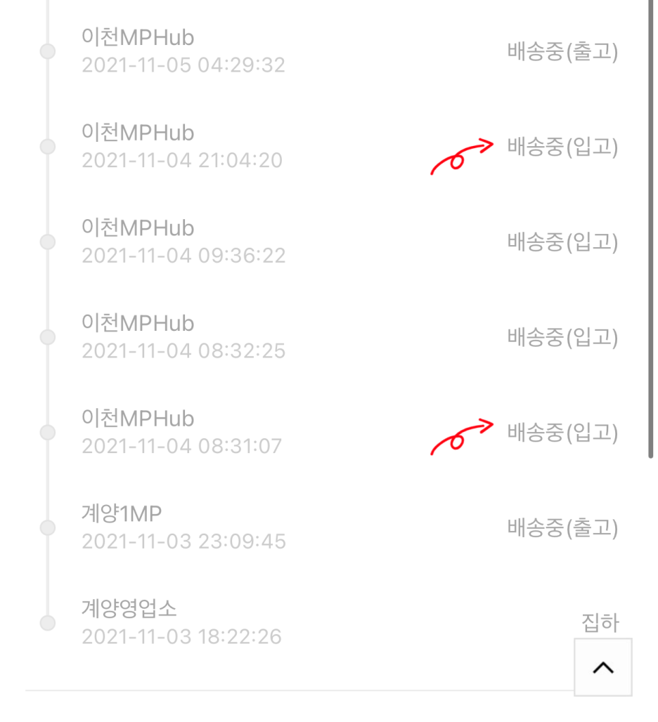 이천 허브에서 한번 누락되어 4일 날 바로 출고되지 않고 다시 입고된 후 5일에 출고됐어요.