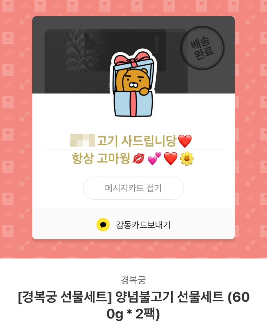 고기선물도 너무너무 좋았지만 항상 고맙다는 메시지가 내가 좋은 사람이라고 해주는 것 같아서 기분 좋았어요.