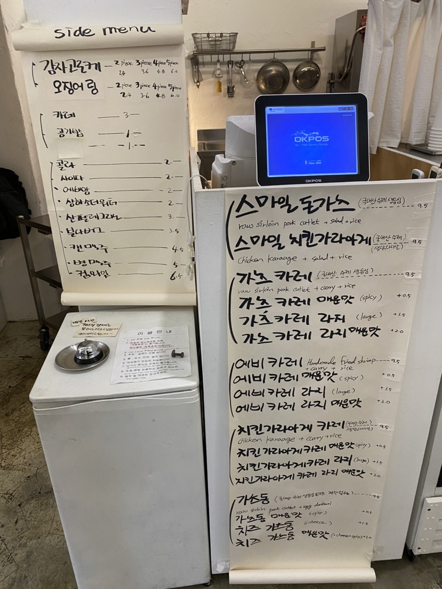 스마일돈까스와 가츠카레가 가격이 동일한데 돈까스의 크기도 동일하고 카레가 큰 접시에 나와서 오히려 가츠카레가 더 가성비 메뉴 같더라고요.
