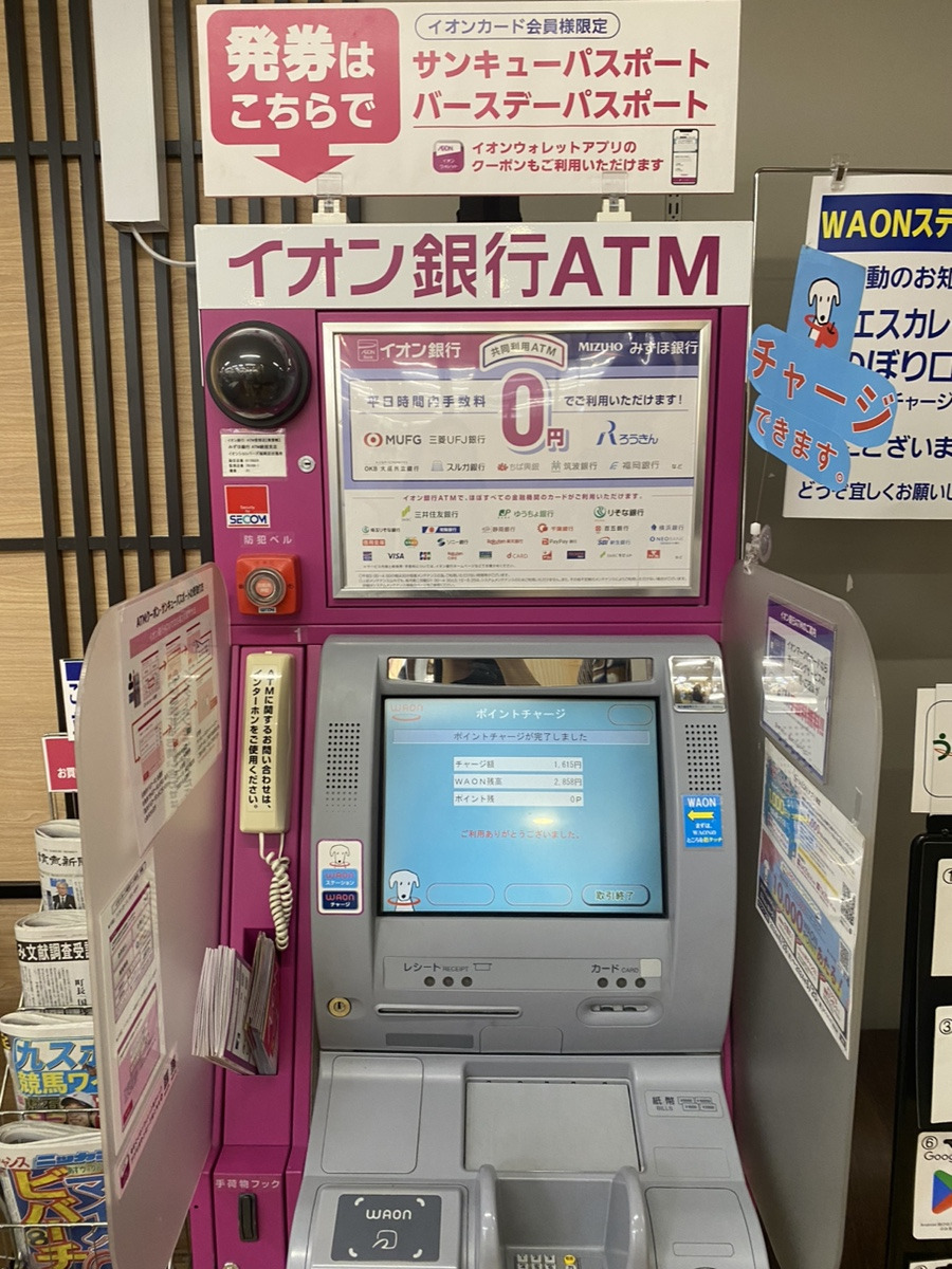 이온쇼퍼즈 후쿠오카점의 이온 ATM은 아주아주 구석에 있습니다.